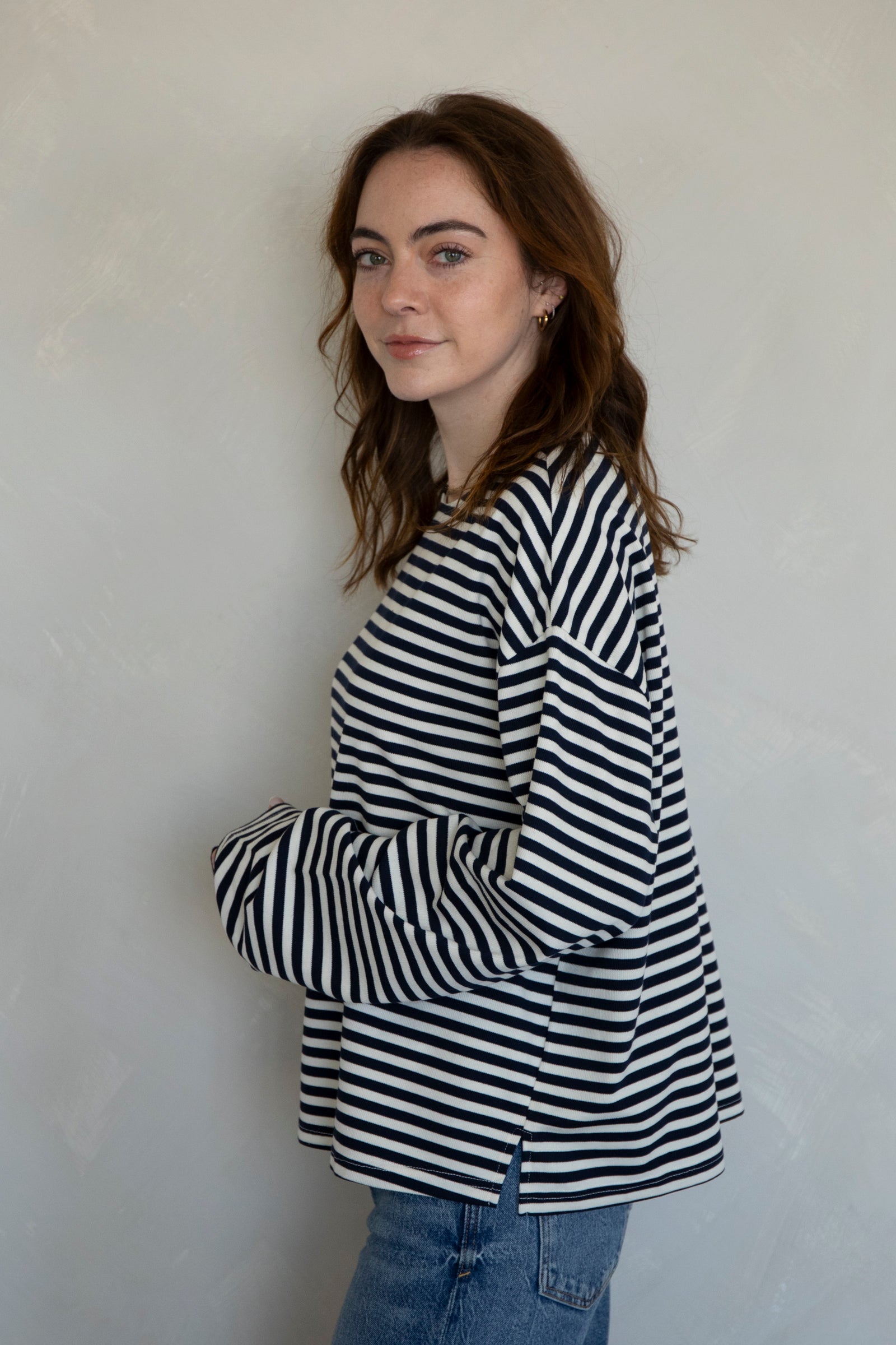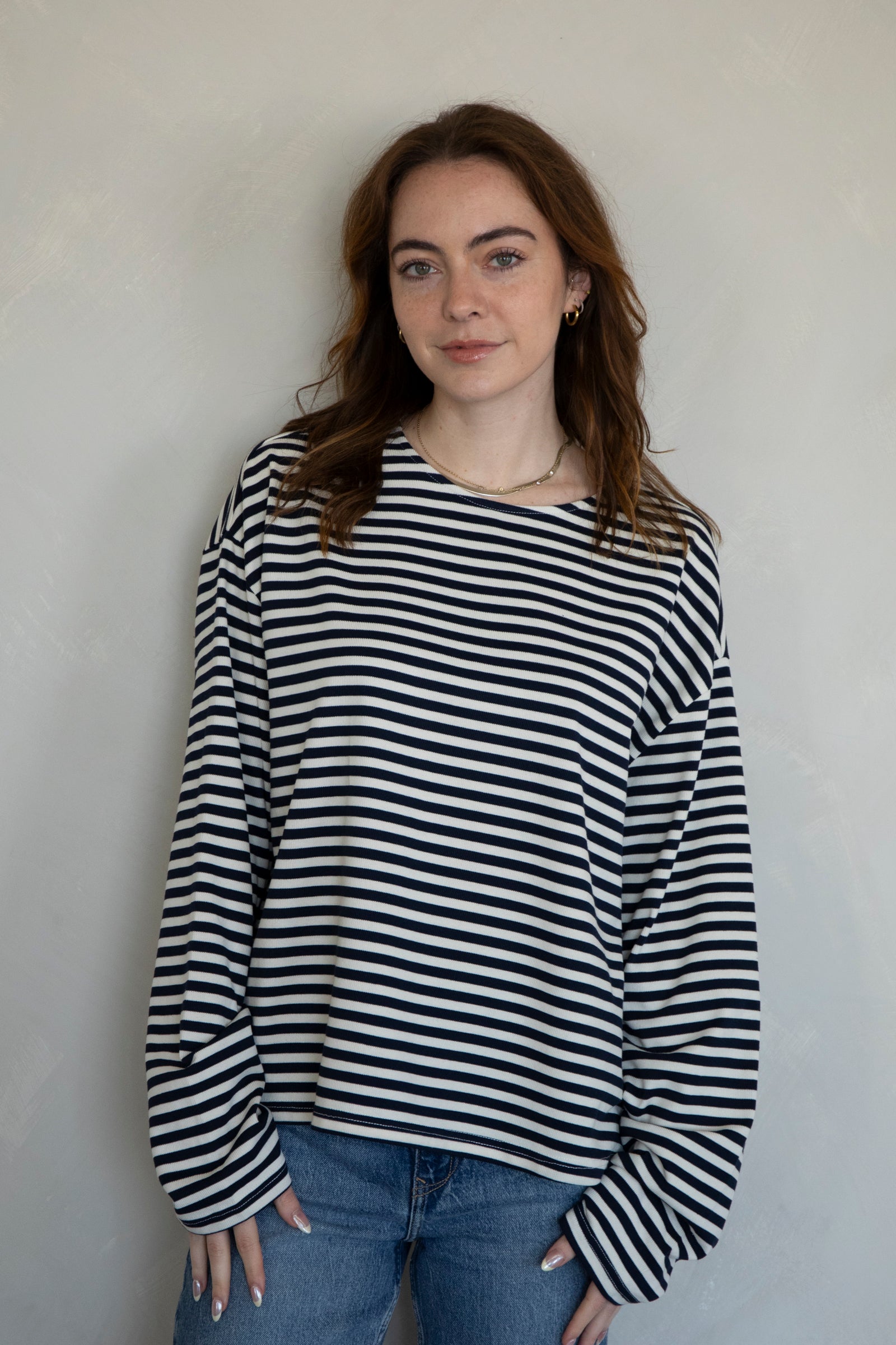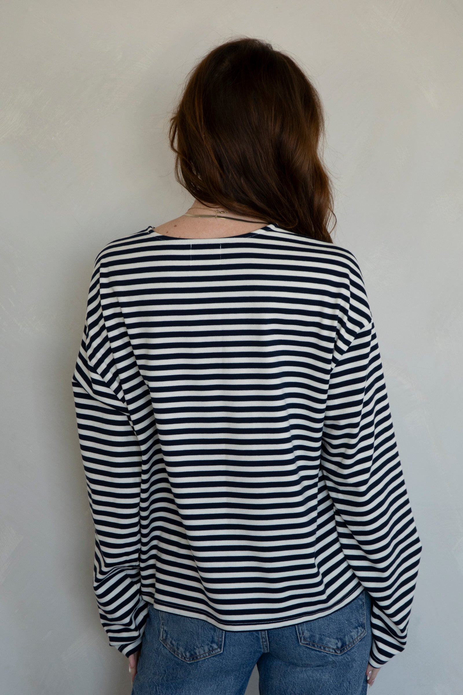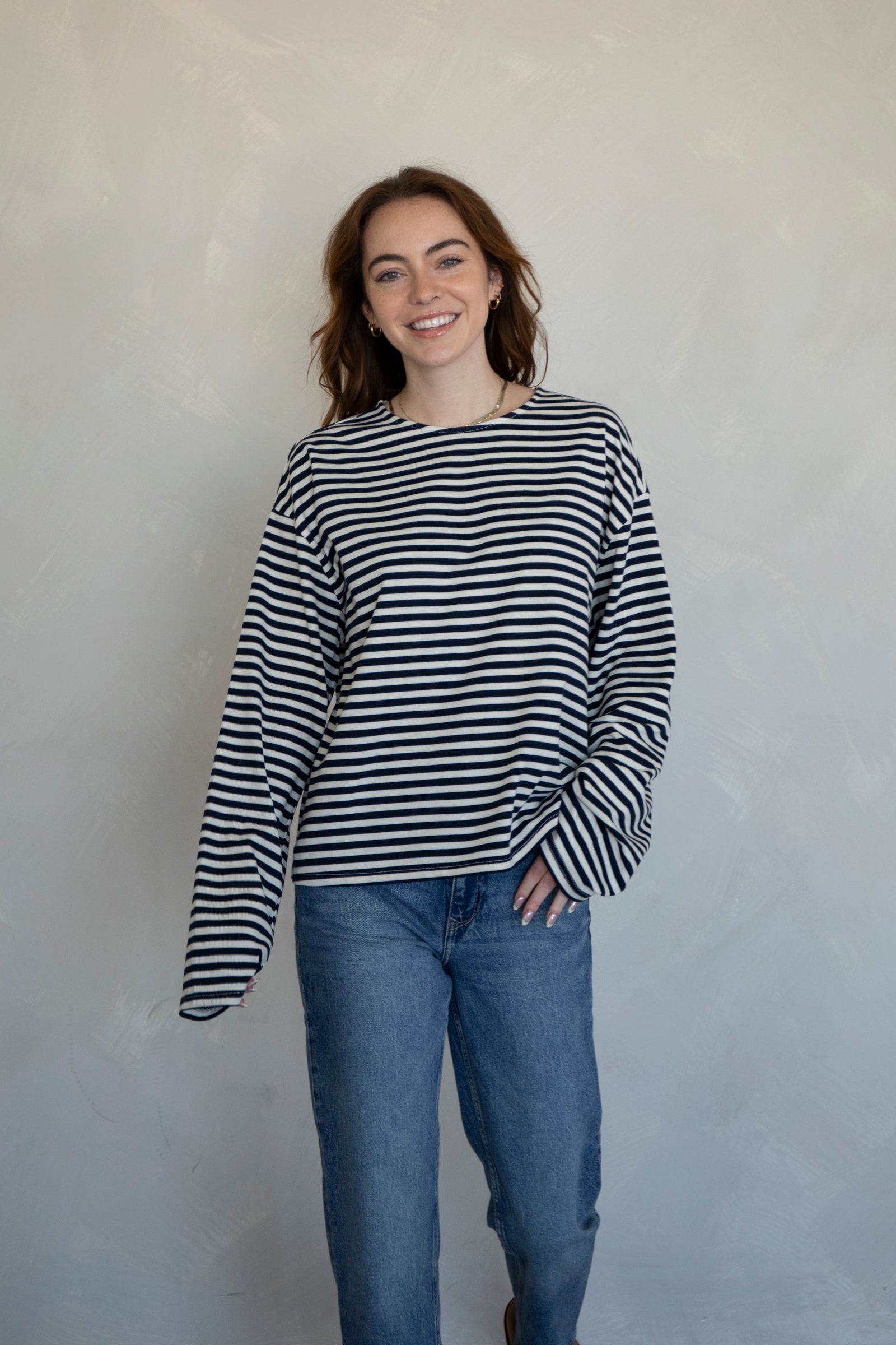Cozy, striped long-sleeve top. Pairs with our Frankie Pants!