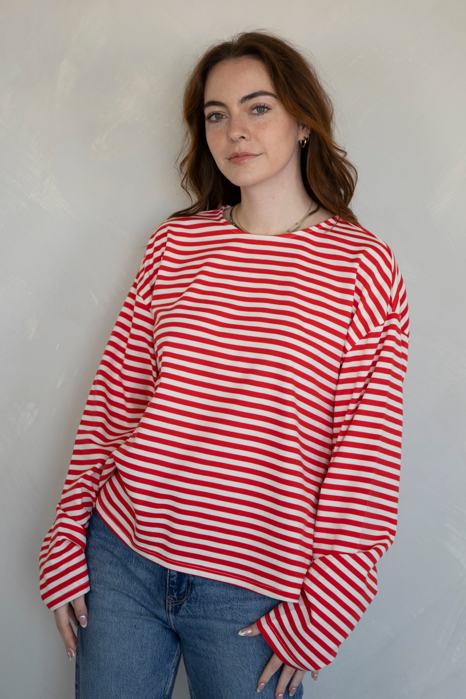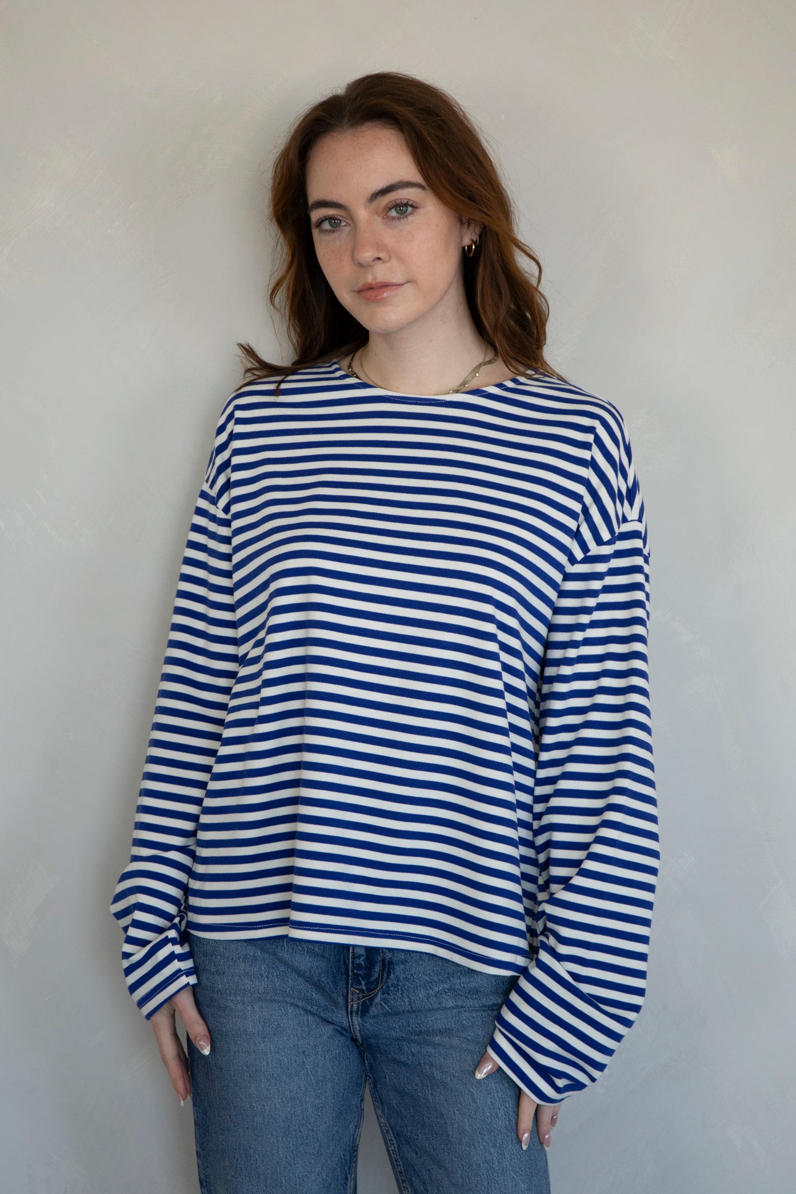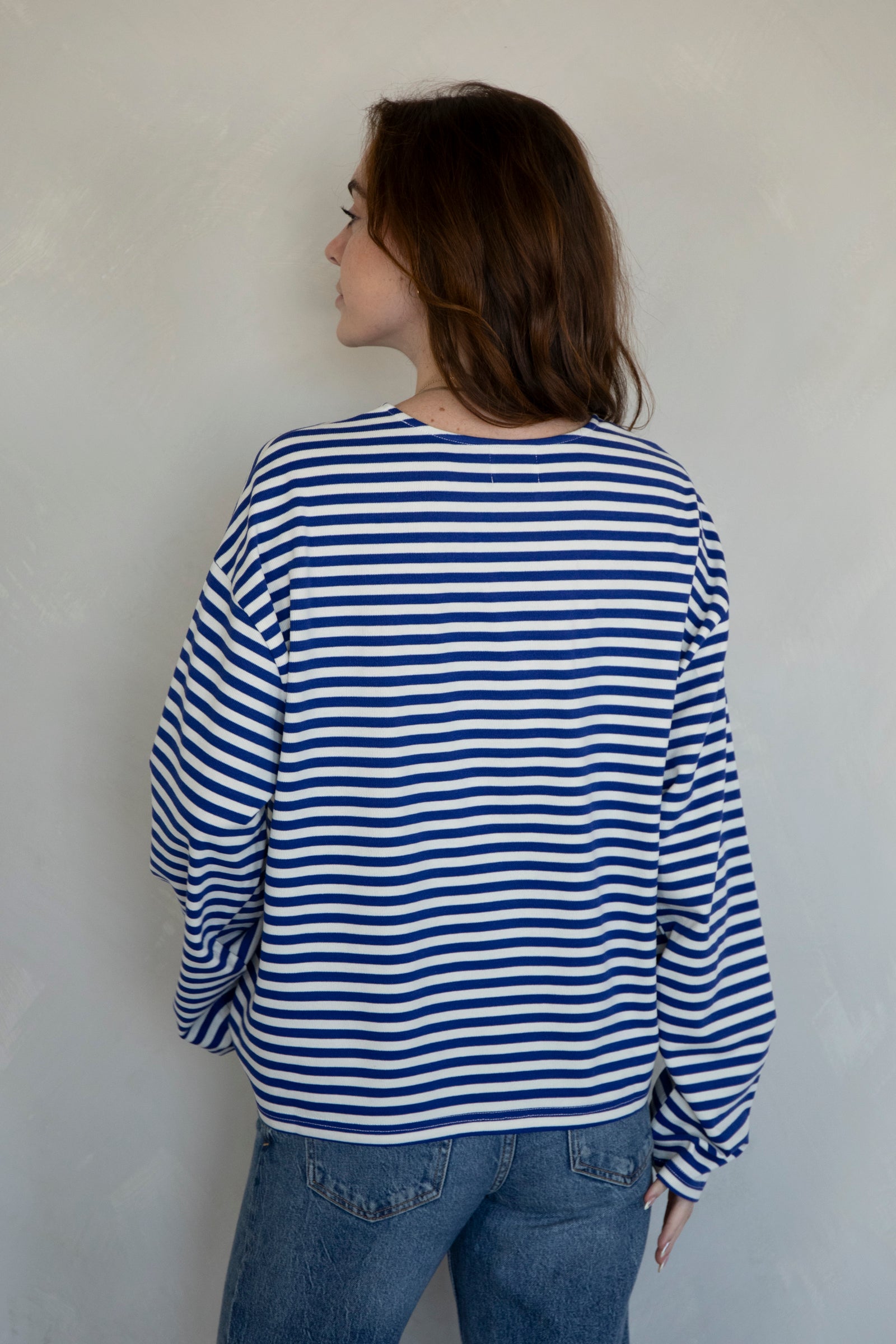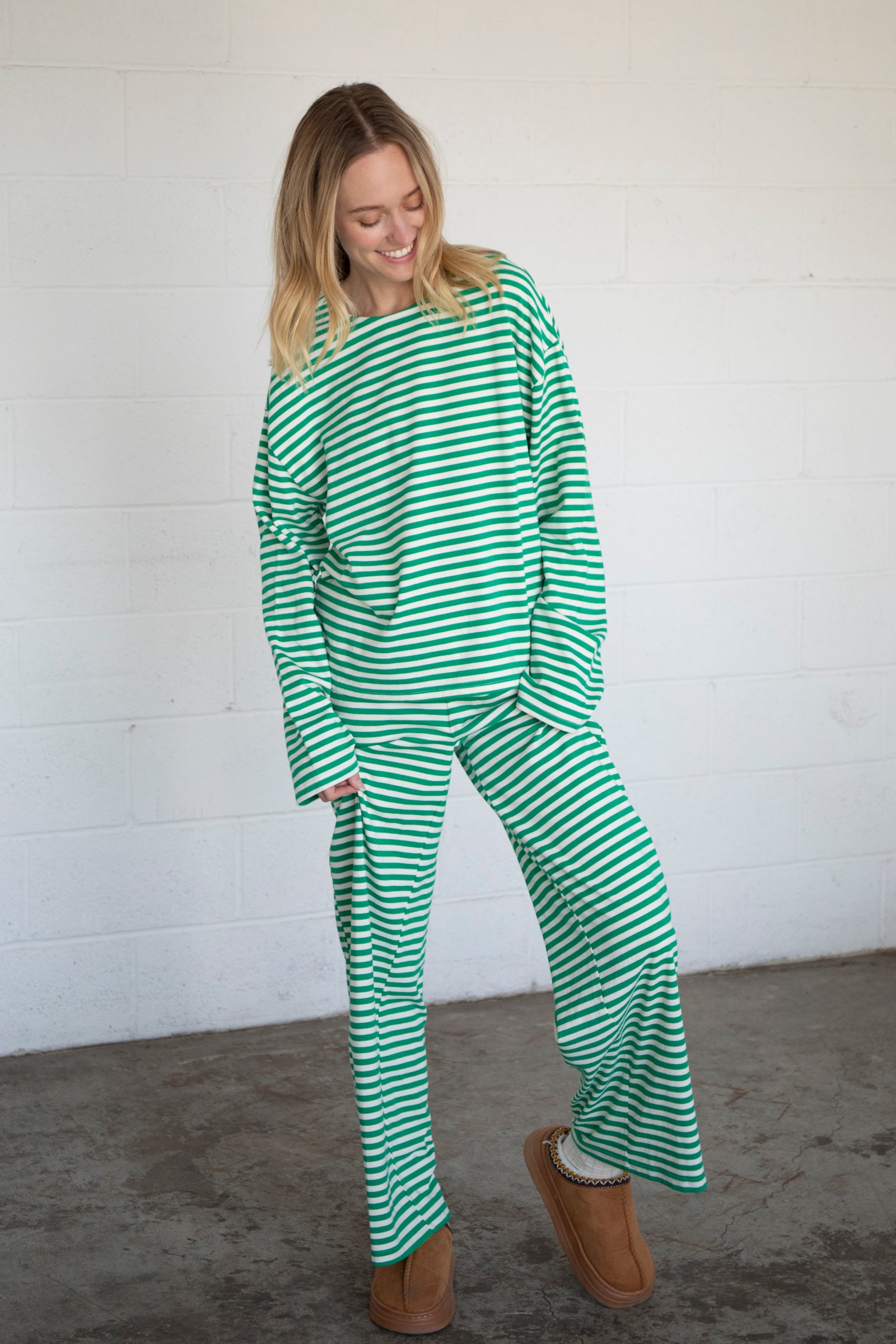 Cozy, striped long-sleeve top. Pairs with our Frankie Pants!
