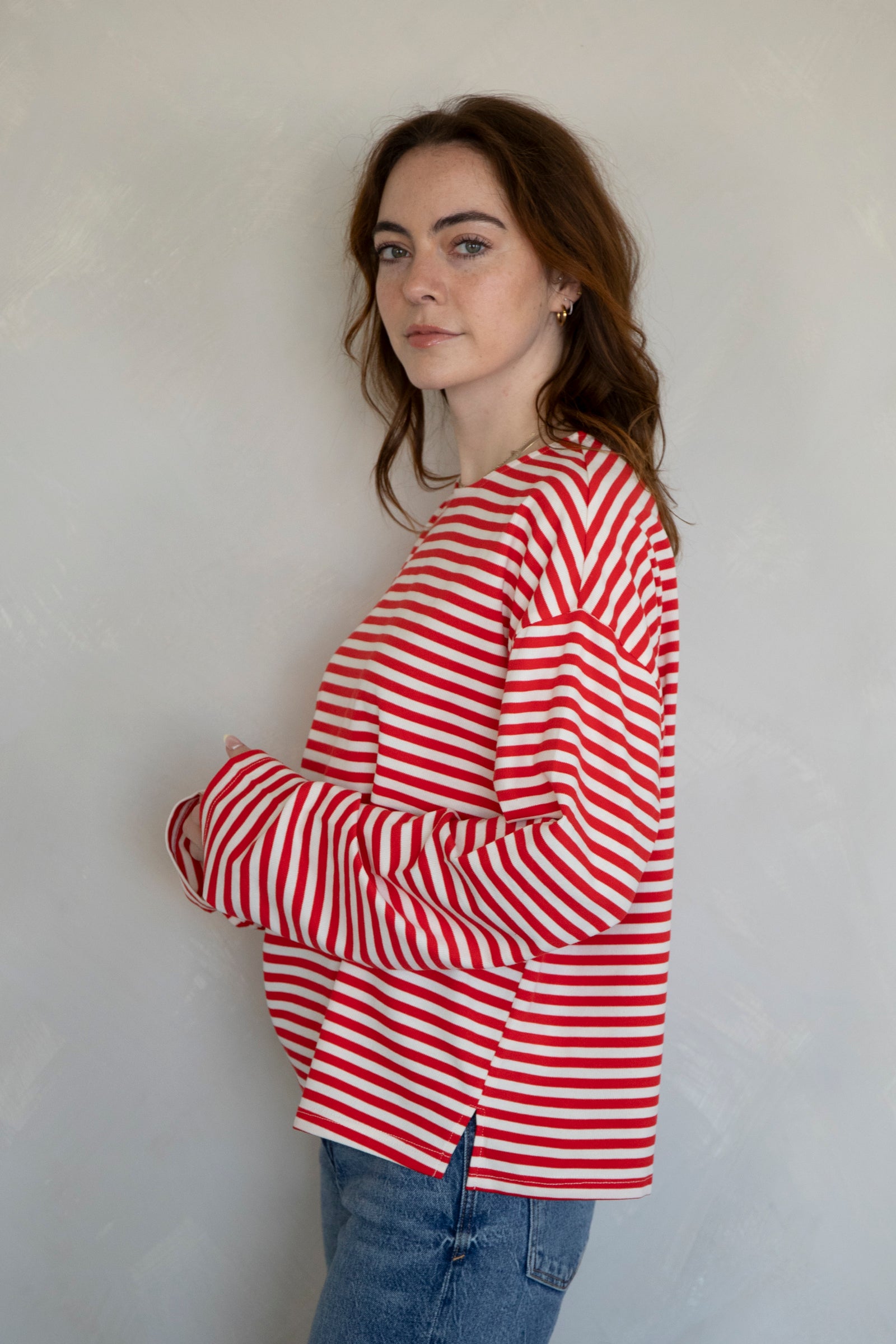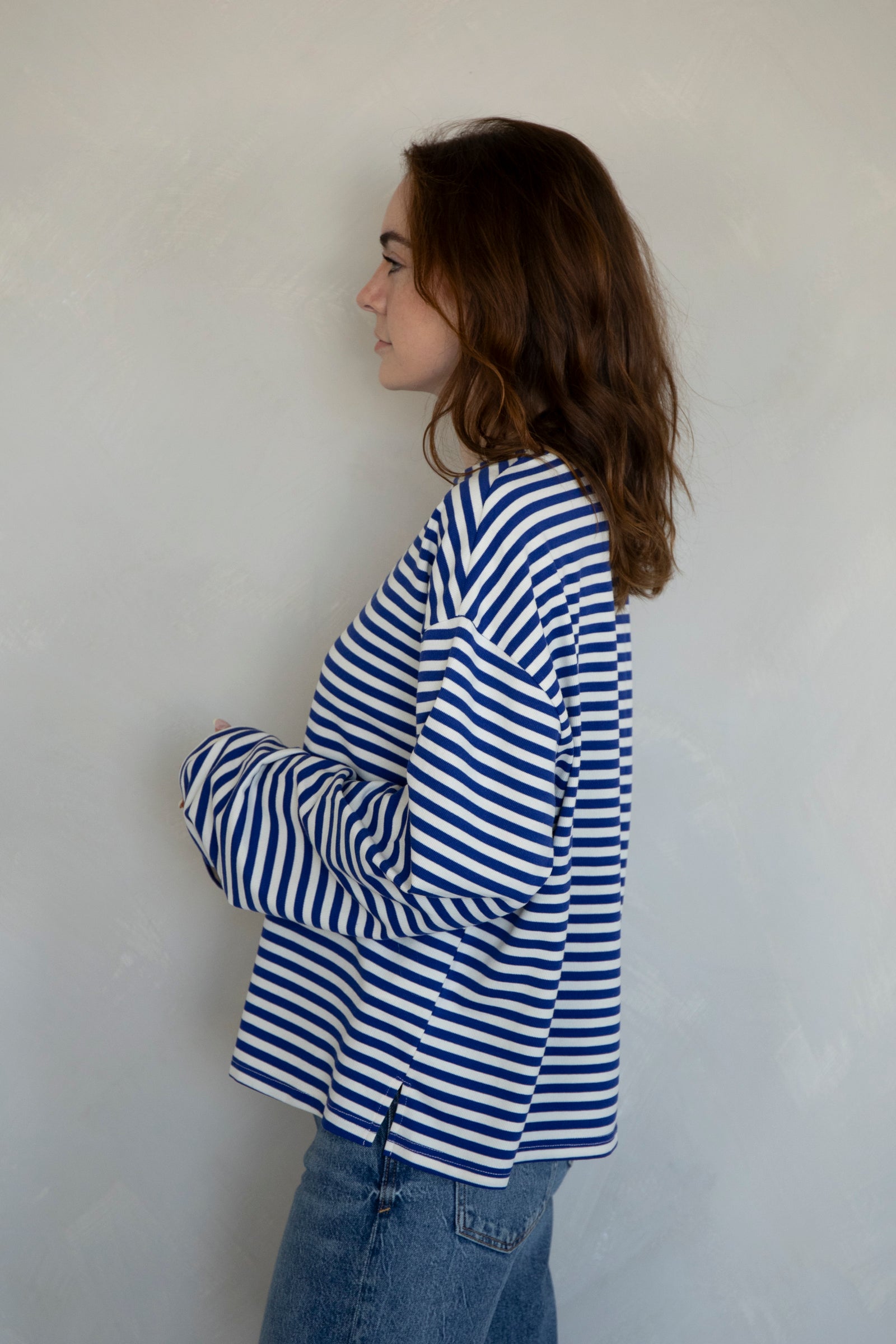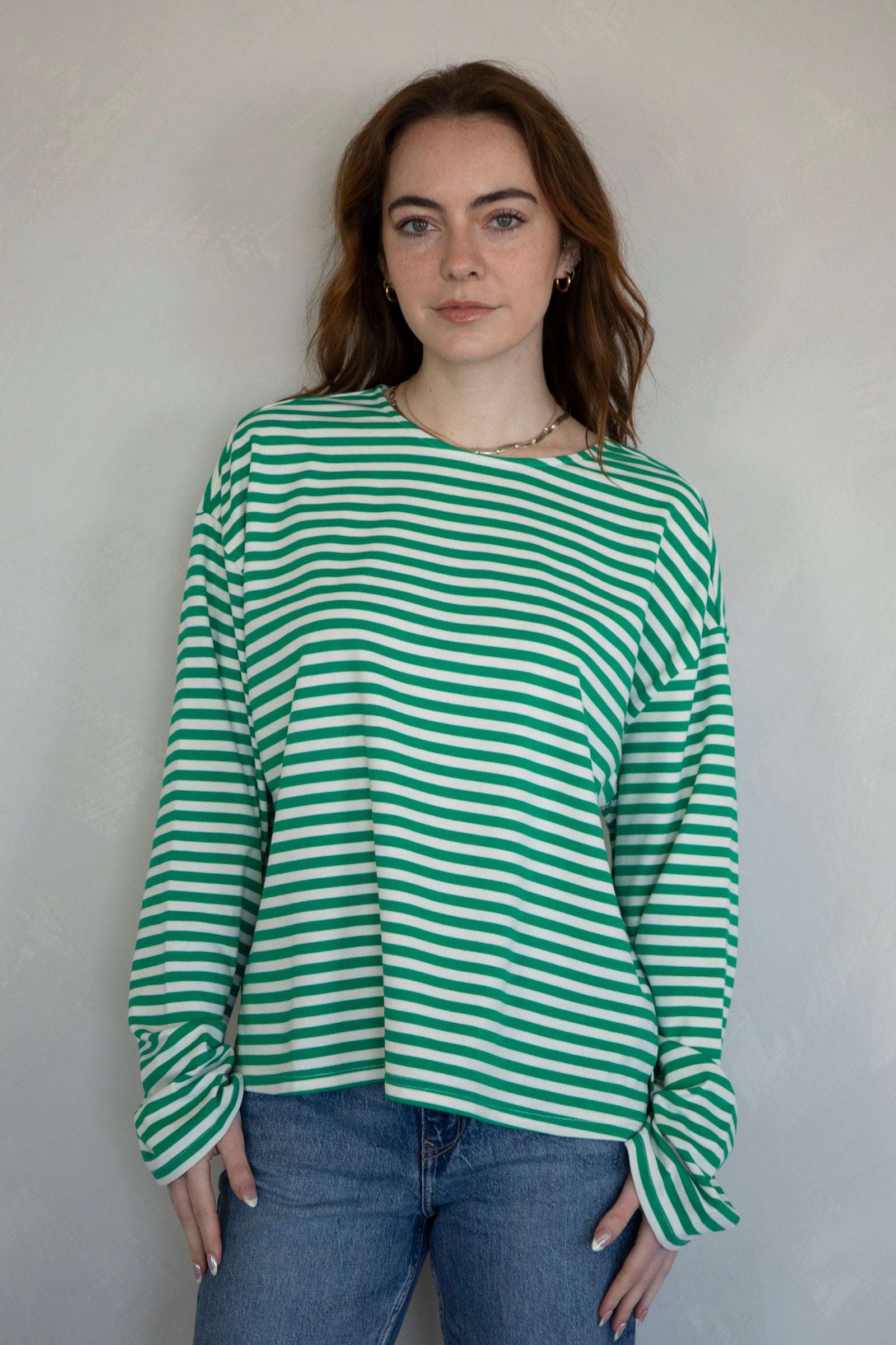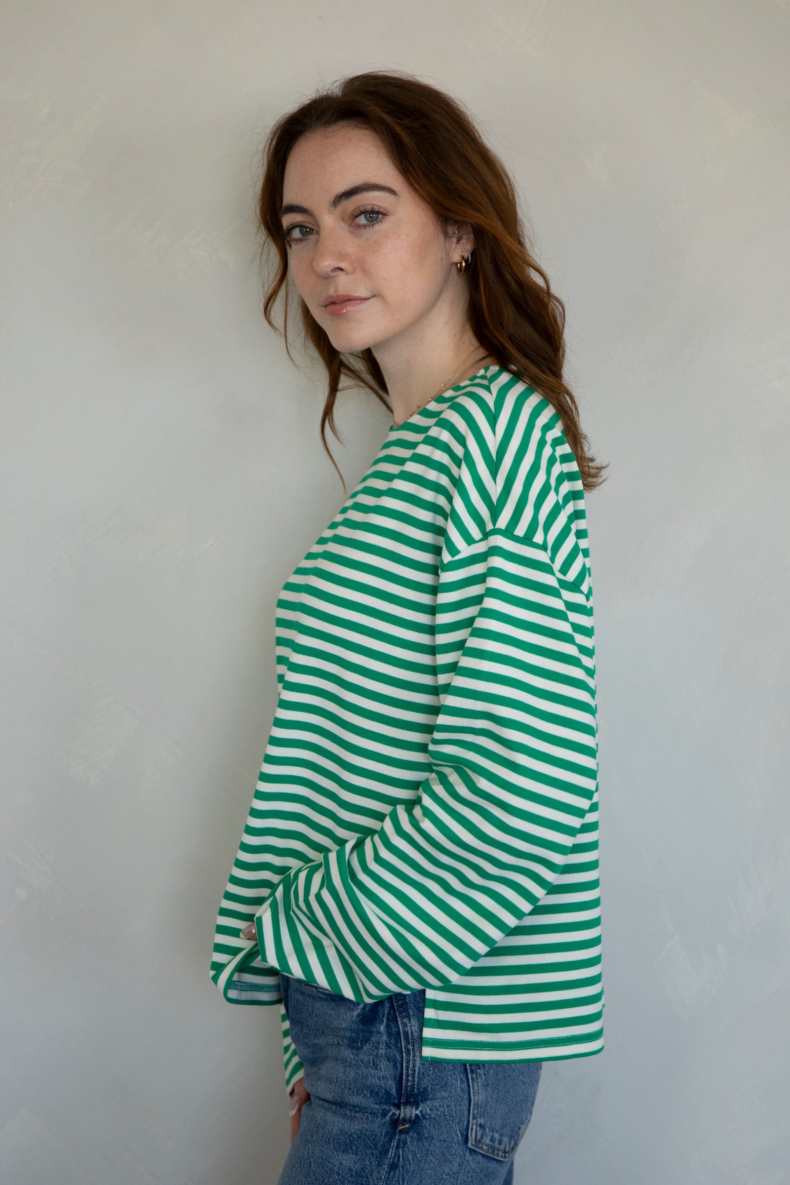 Cozy, striped long-sleeve top. Pairs with our Frankie Pants!