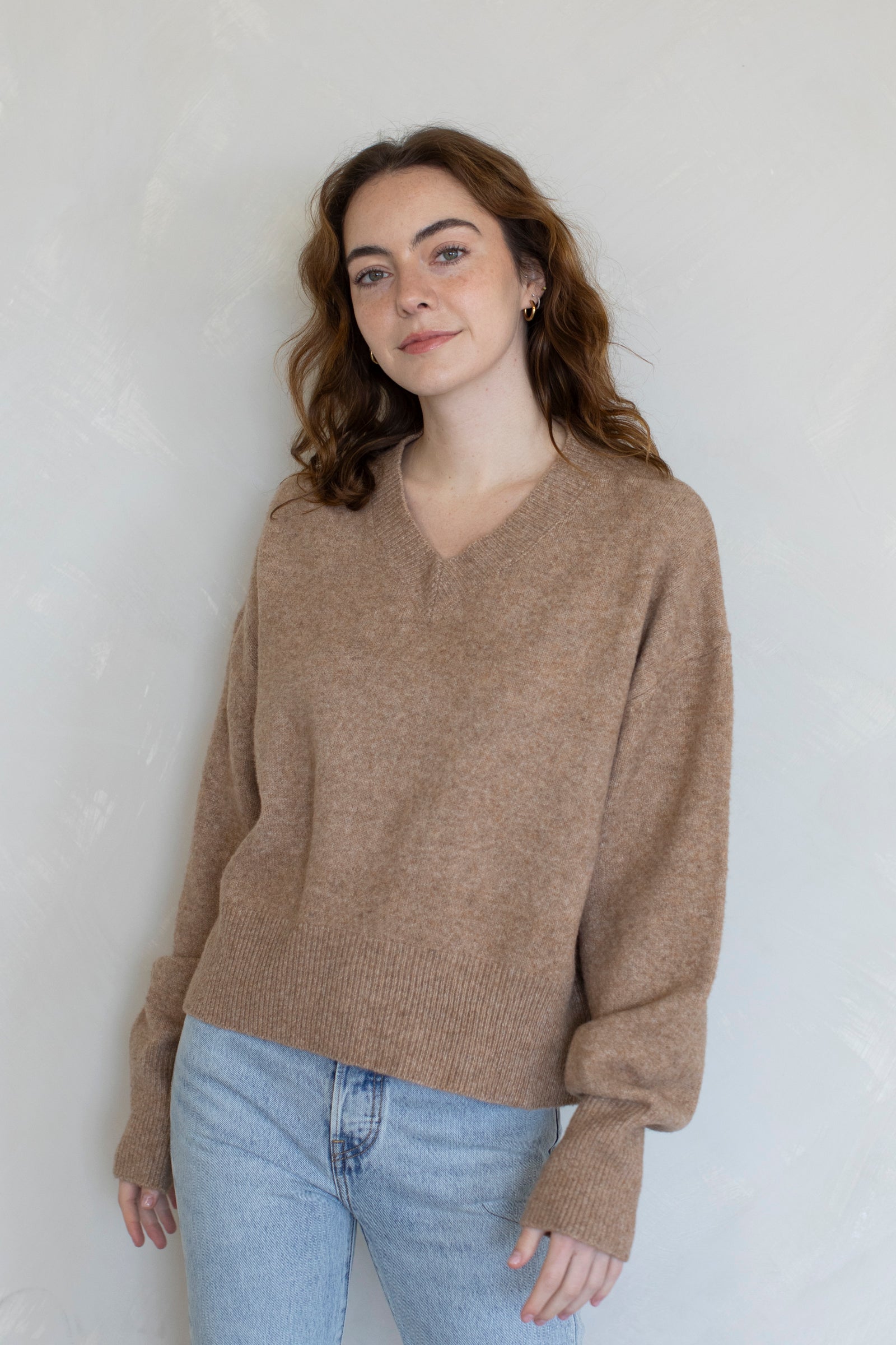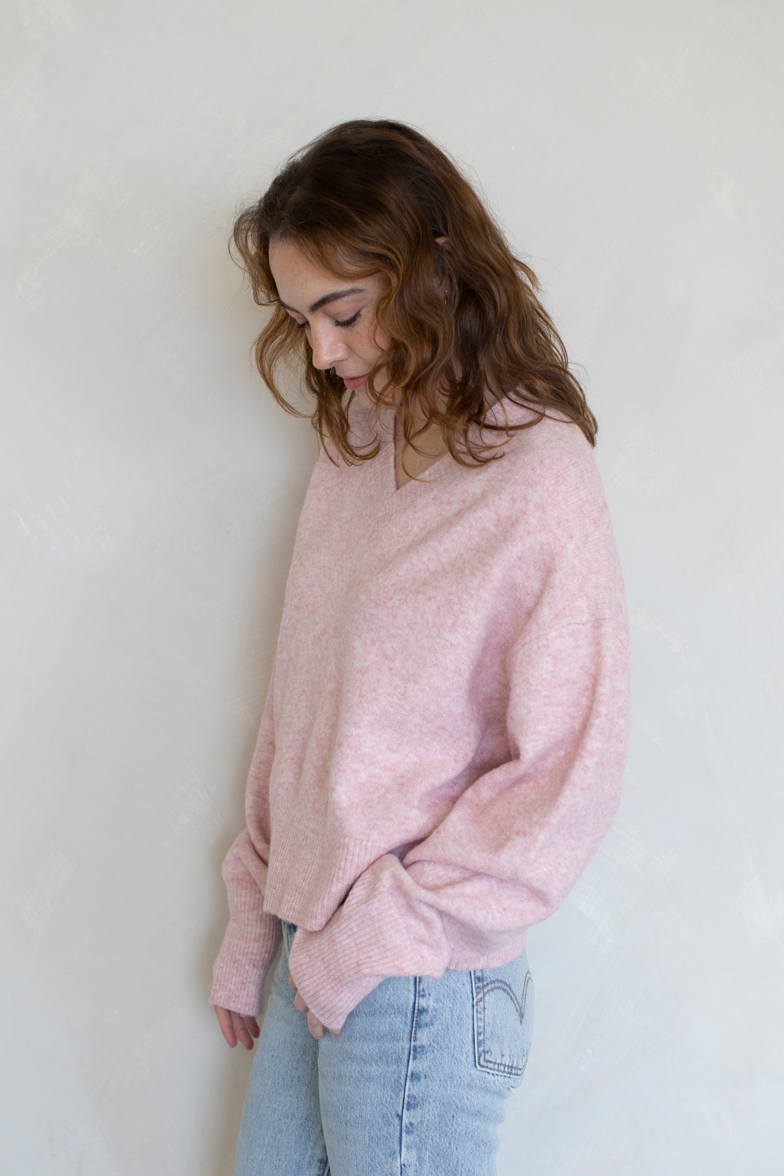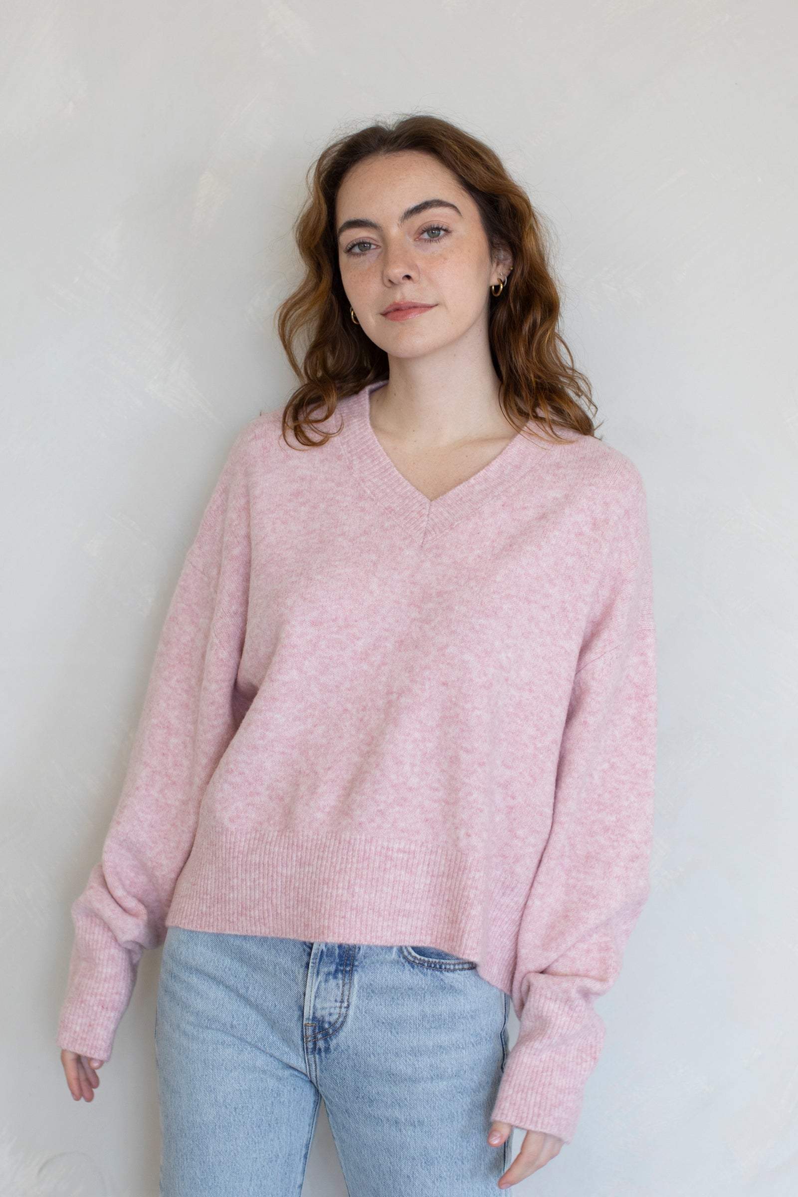 Super soft v-neck sweater knit.